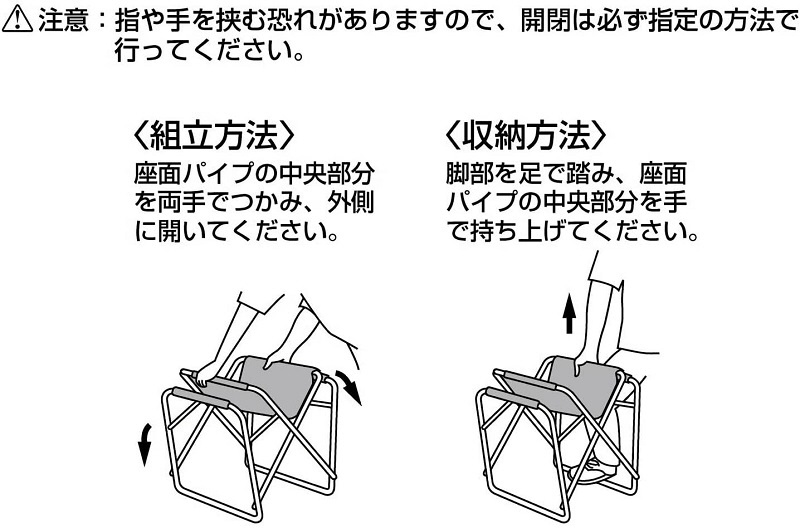 仕様1 サイズ:組立時=約幅500×高さ455×奥行390mm 座面の高さ340mm 収納=約390×620×厚さ100mm