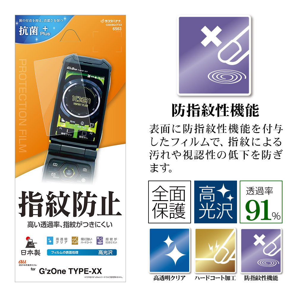 GzOne TYPE-XX 光沢防指紋フィルム PETフィルム 全面保護 高光沢 指紋防止 高透明 クリア G3336GOTXX