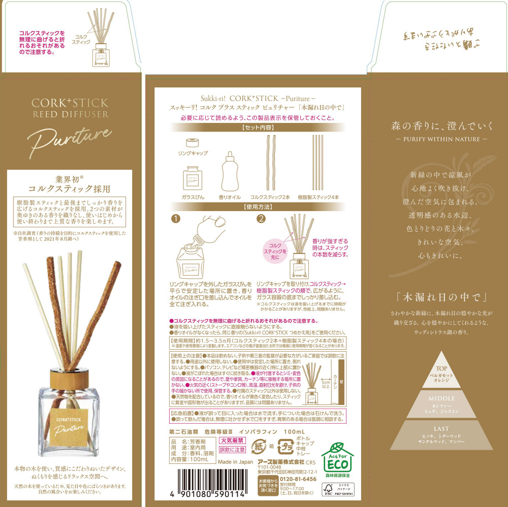Sukki-ri!(スッキーリ!)CORK+STICK Puriture 木漏れ日の中で 本体 100mL