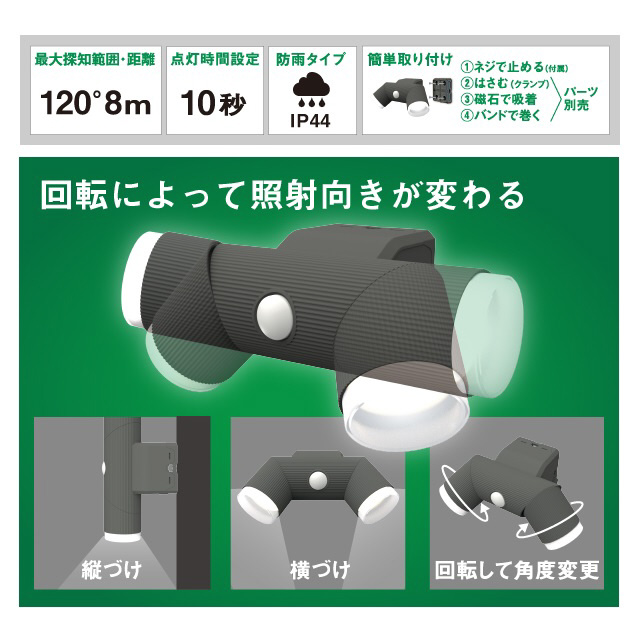 センサー検知範囲 最大120°最遠8m(取り付け高さ2m)