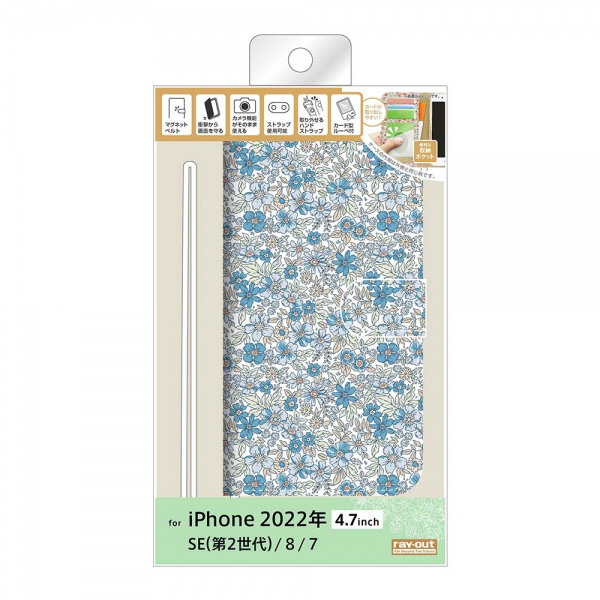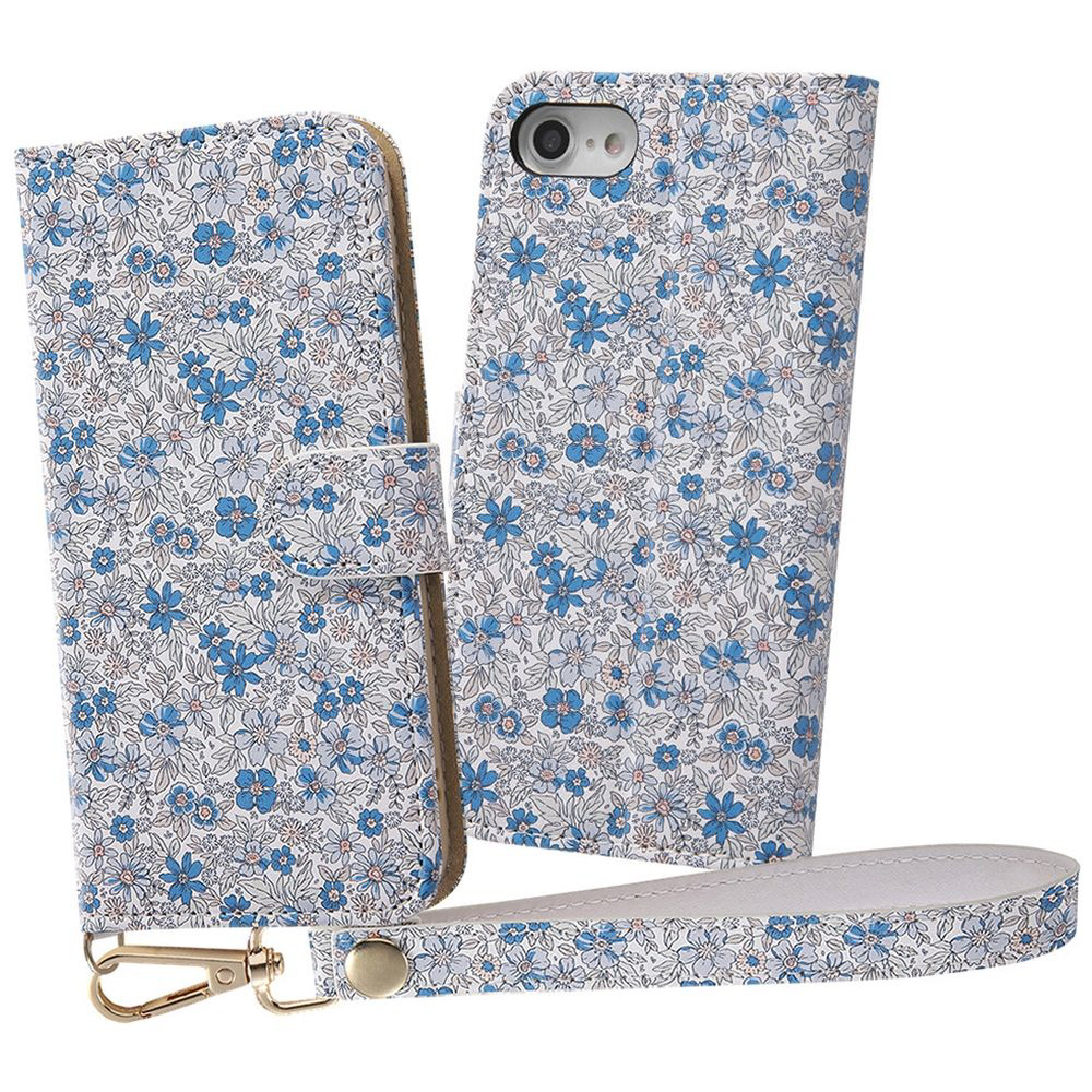 iPhoneSE(2/3世代)/8/7 手帳型 クリアポケット ハンドストラップ ルーペ付 花柄