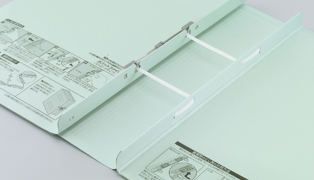 ●従来からのとじ足を穴に通すのではなく、横から出し入れできる新設計とじ具を採用。書類の抜き差しを簡単かつ容易にします。