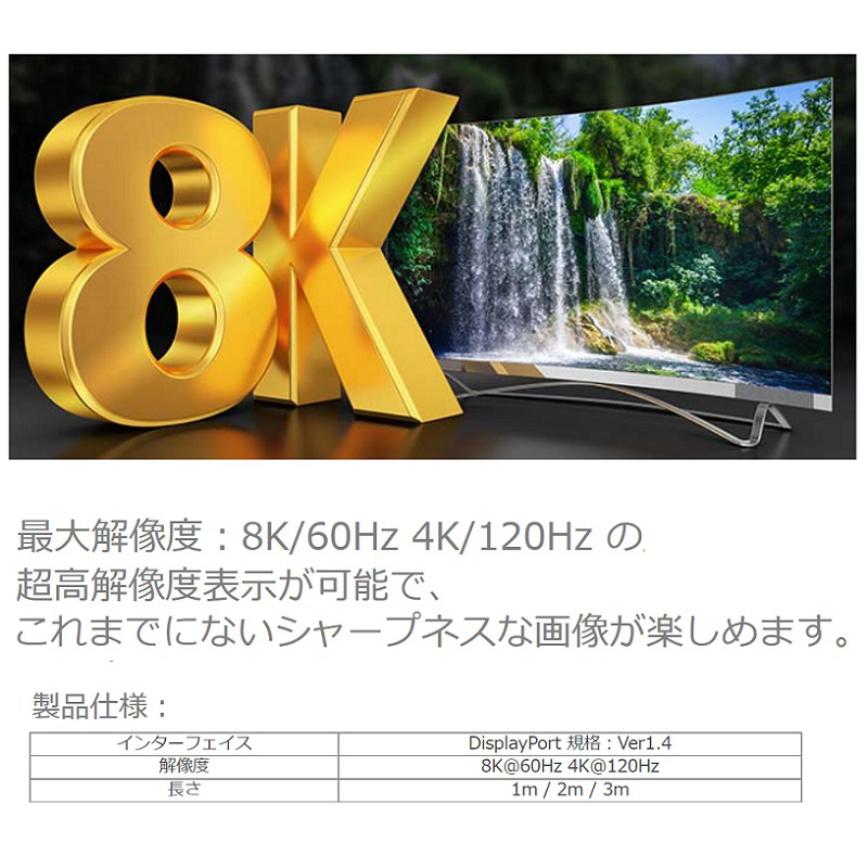 TM-DP14C-200 DisplayPortケーブル Ver1.4 8K HDR対応 ブラック [2m]