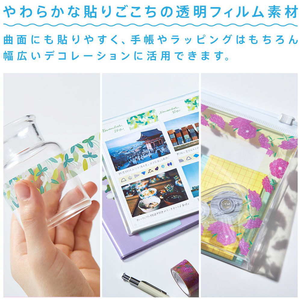 貼ってはがせる透明フィルムのマスキングテープ