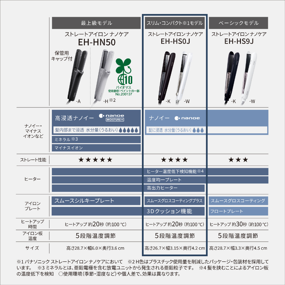 (※1)パナソニック評価基準に基づく毛束10束1回施術直後での毛束ストレート値を2022年発売当社EH-HS9Jと比較。