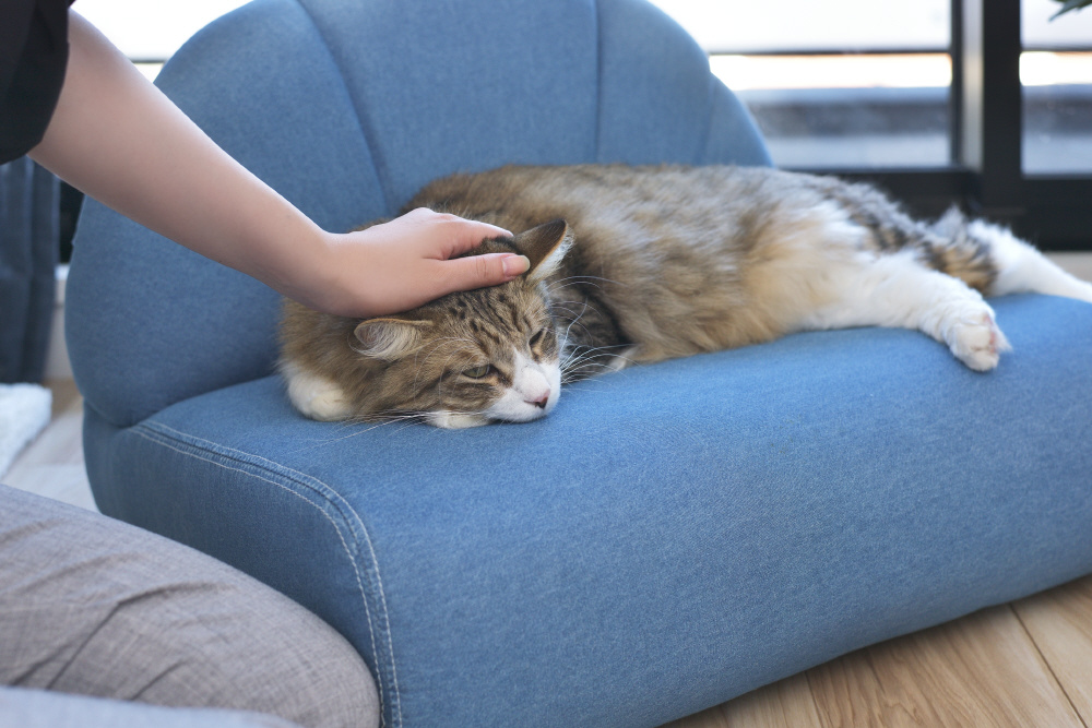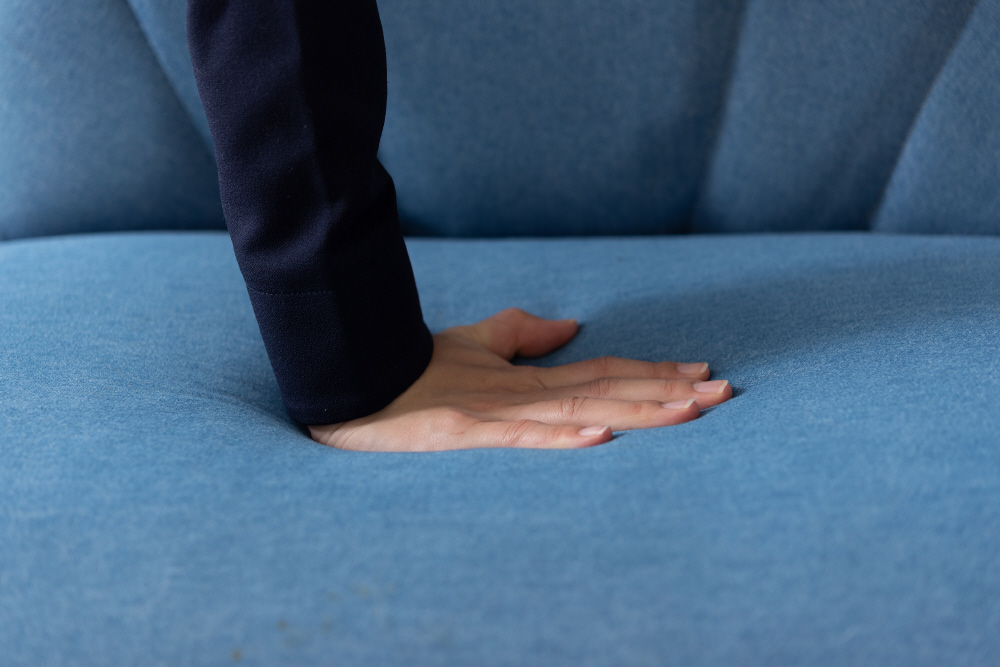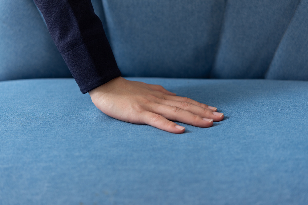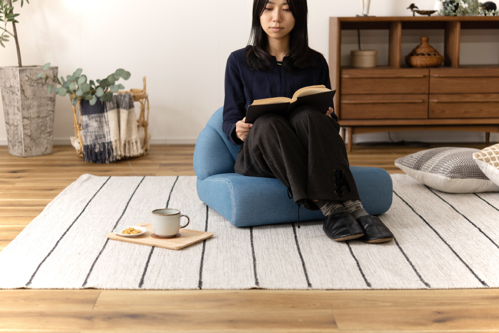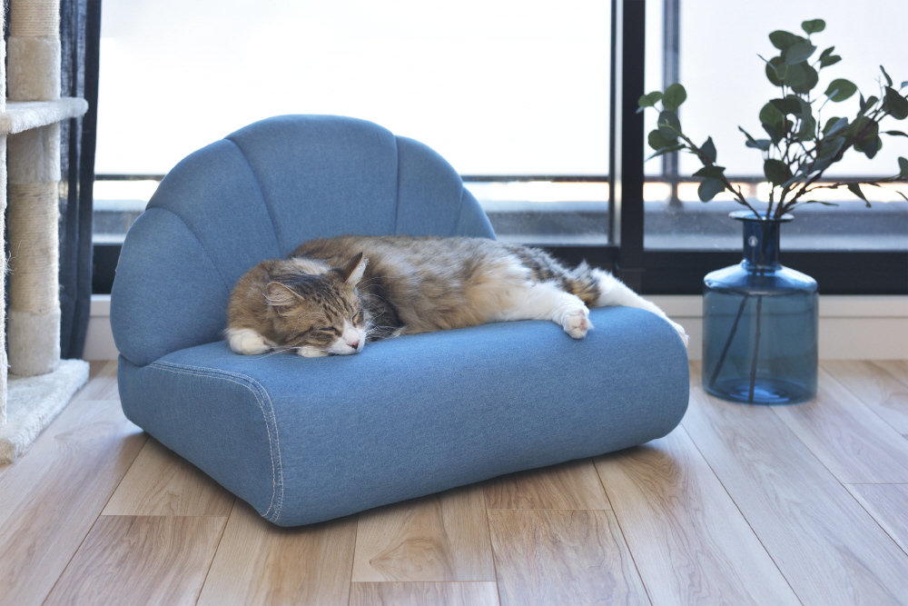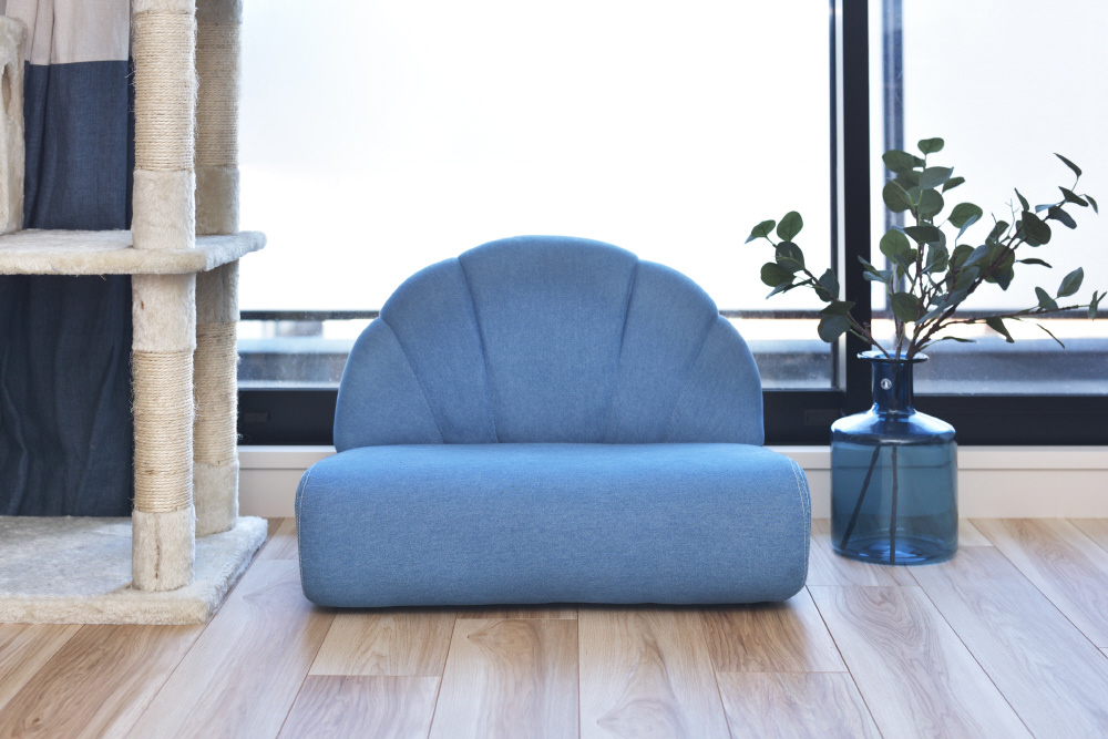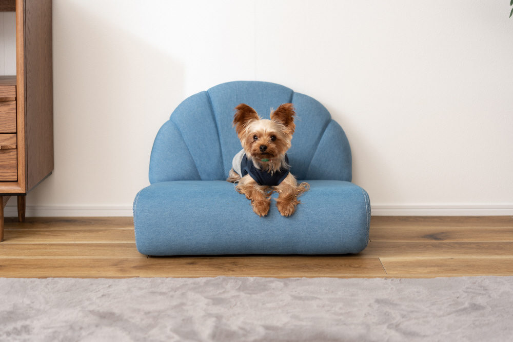 ペットはもちろん、人も座ることができるペットソファ。広い座面でゆったりとくつろぐことができます。分厚くしっかりとした座面。体を支えるふっくらとした背もたれ。手触りの良いしっとりとしたコットン生地。脚裏には傷防止フェルトが付いているので安心。