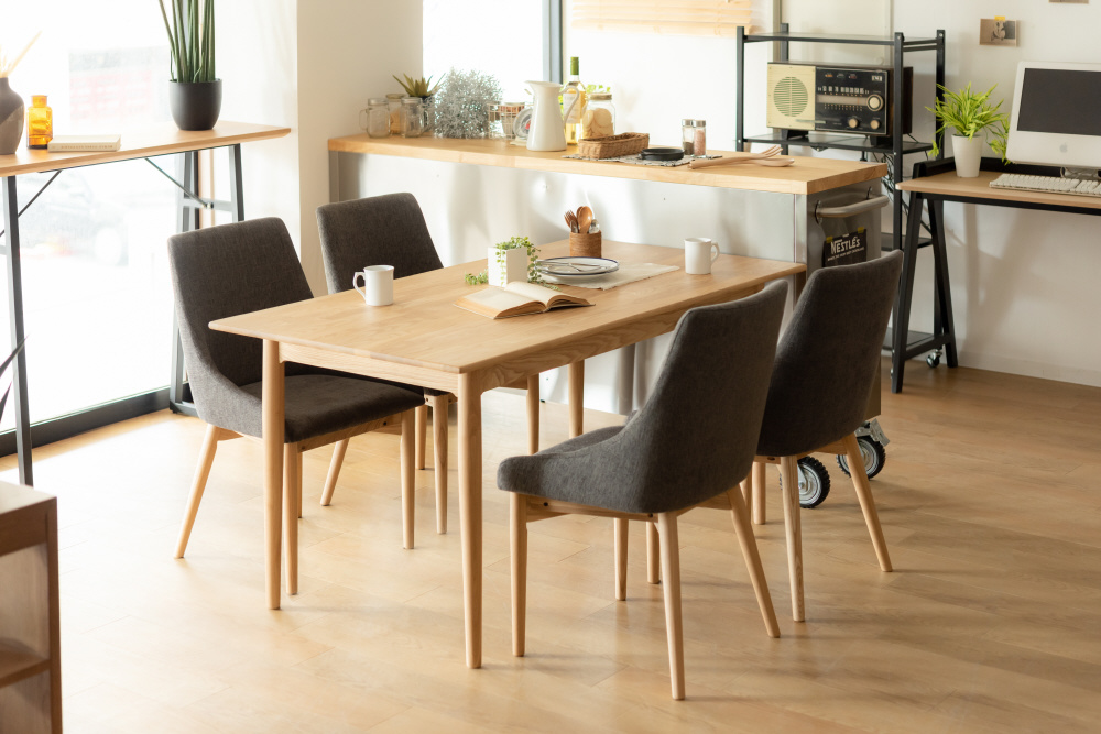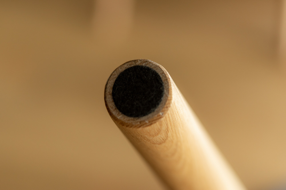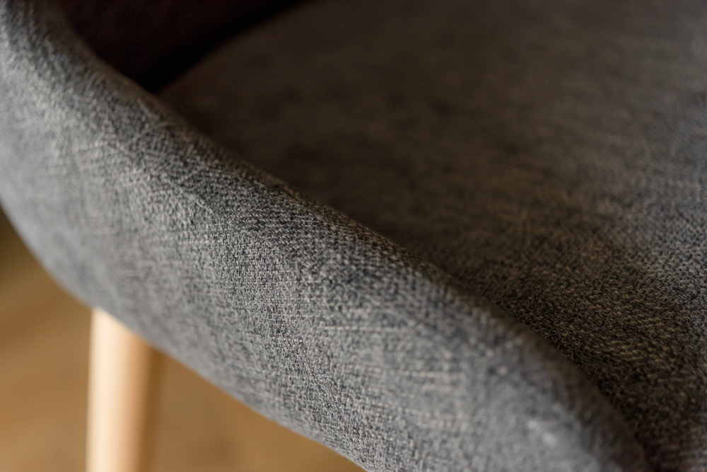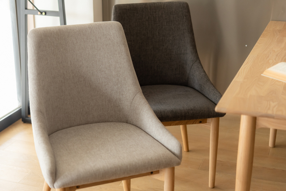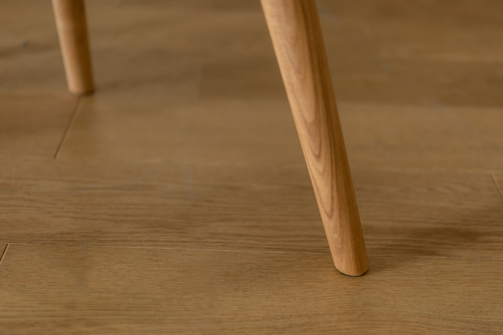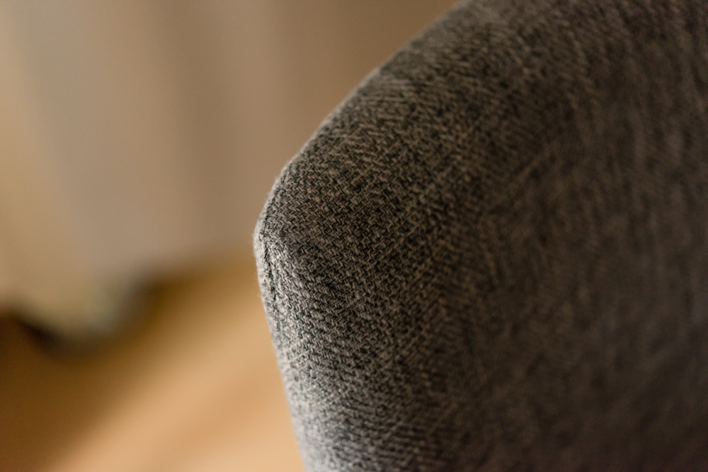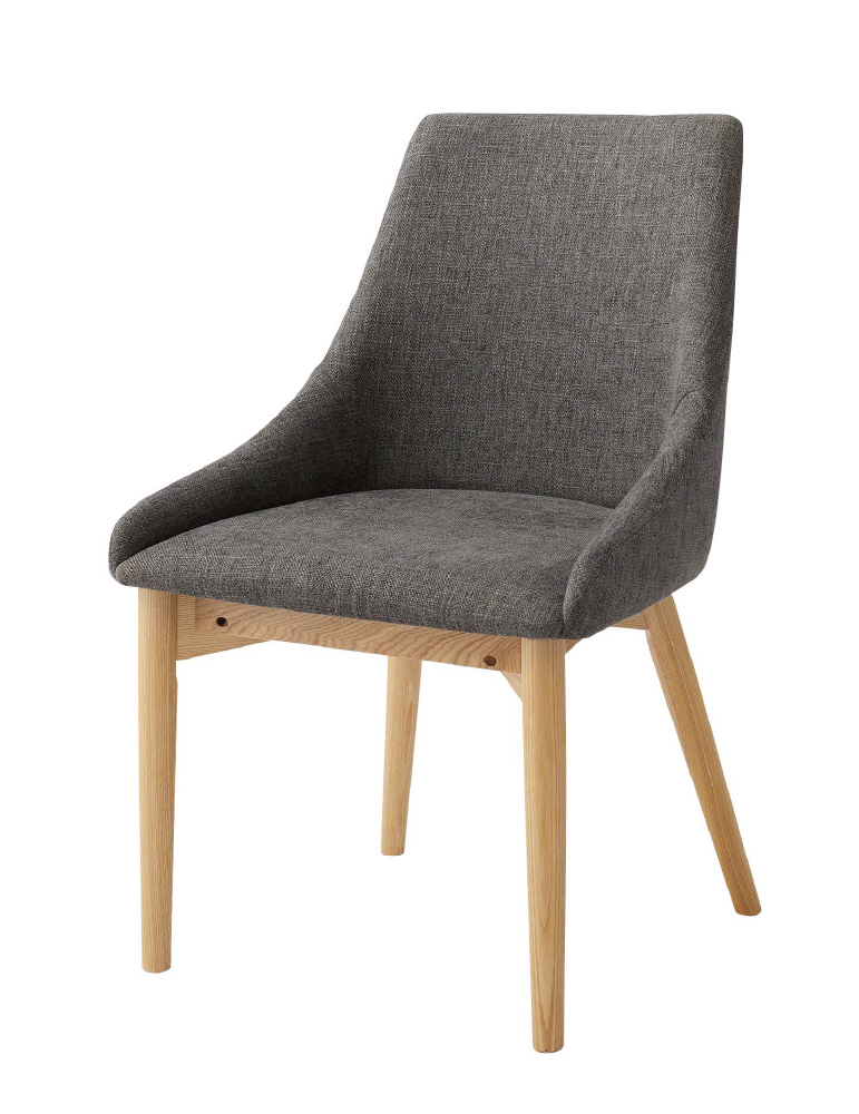 身体を包み込むような曲線を取り入れたフォルムと、表情豊かな木目が特徴のアッシュ材を組み合わせたハイバックチェアです。しっとりとした感触の、手触りの良いファブリックを採用。後脚は八の字に広がる形状でデザイン性をプラス。座面は快適に使用していただけるよう、硬すぎず柔らかすぎない適度なクッション性を持たせました。脚裏は床への傷を防止するフェルト付き。