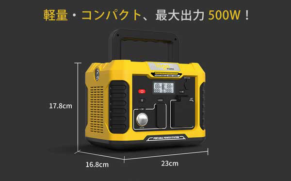 ポータブル電源 ADVANCE500 AD500Y [リチウムイオン電池 /7出力 /DC充電・ソーラー(別売) /USB Power Delivery対応]