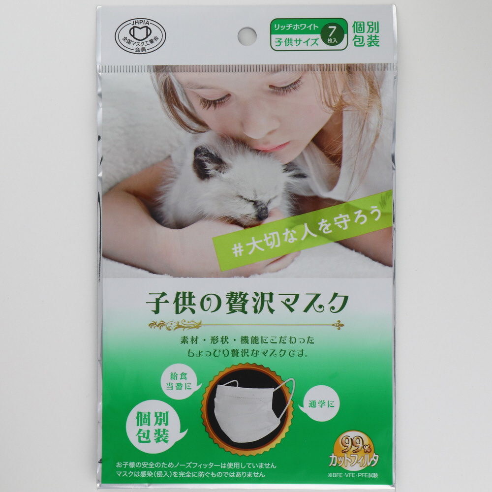 贅沢マスクの子供シリーズ。 ノーズフィッターのない安全設計 お試し用の7枚袋入り