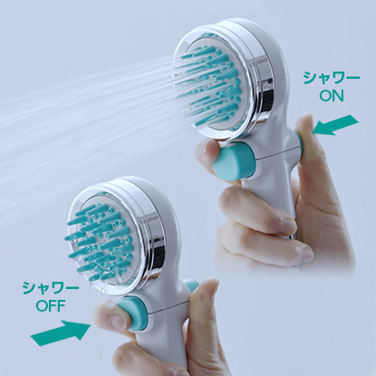 動き回るペットでも楽に洗うことができるエアビートシャワピタシリーズのペット用商品です。空気を取り込み、ビートを刻むようなシャワー水流による心地よい刺激でマッサージ効果を発揮。ペットを洗う際、洗浄とブラッシングを同時にできるようにシャワー板に柔らかいゴム製ブラシが付いています。片手でシャワーのON/OFFが可能な手元ストップ機構付き。工具不要で取り付け簡単。