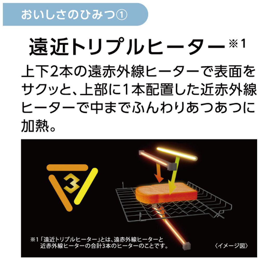 遠近トリプルヒーターとインテリジェント制御を搭載しおまかせでサクッと、ふんわりトーストを実現。