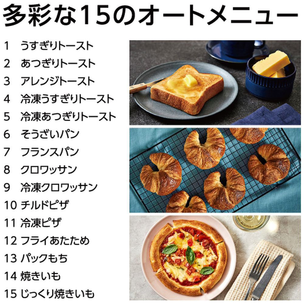 遠近トリプルヒーターとインテリジェント制御を搭載しおまかせでサクッと、ふんわりトーストを実現。多彩なオートメニューやオーブン調理も充実。