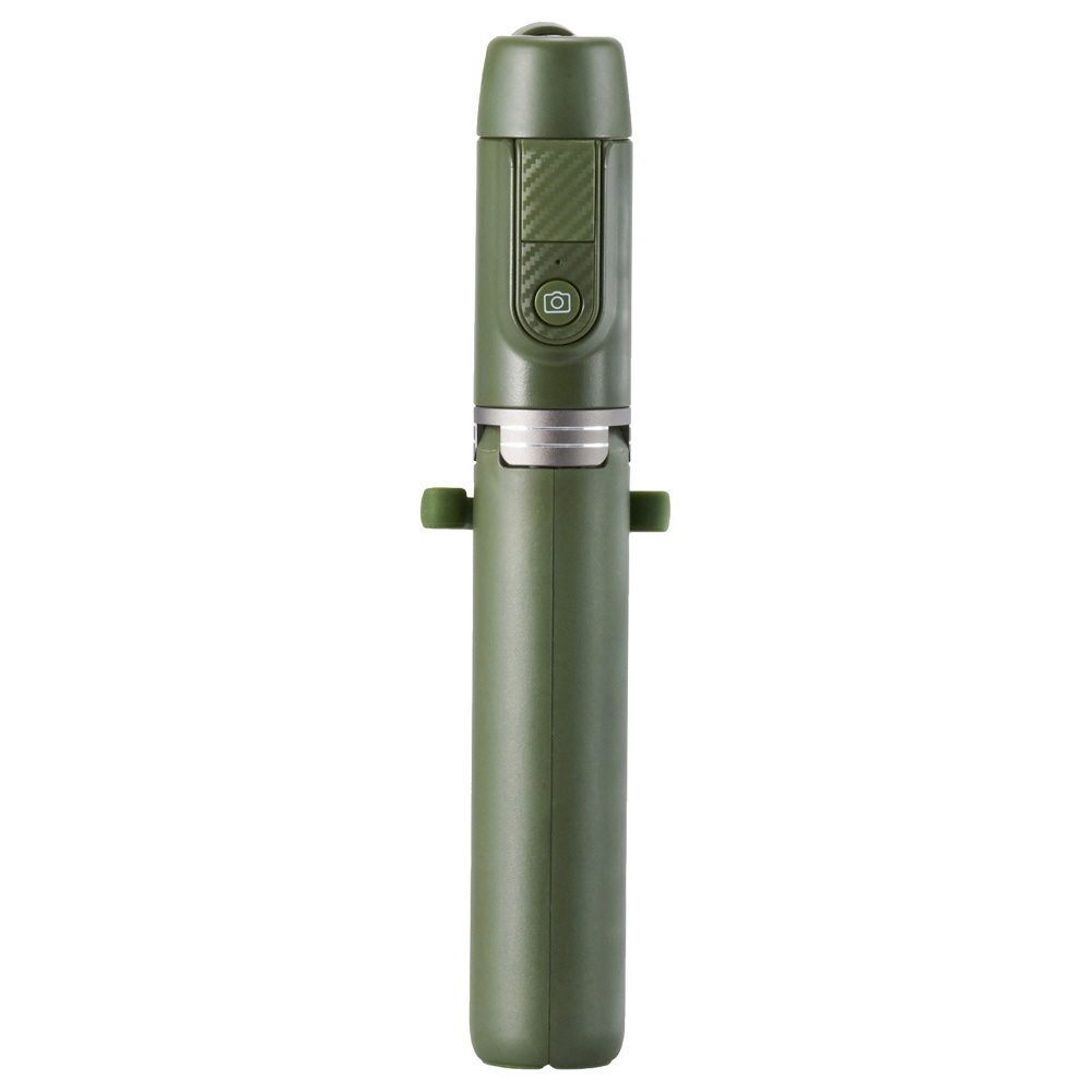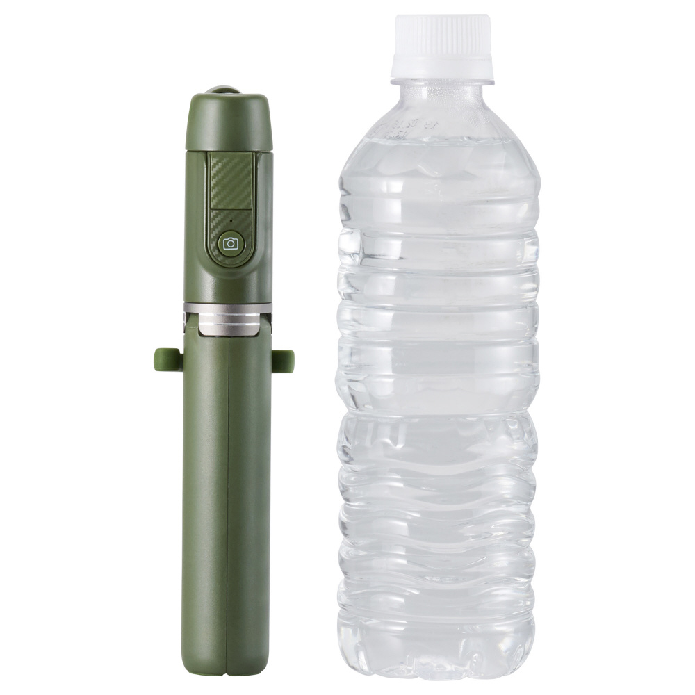 グリップを開いて置くだけの簡単設置。自撮り棒も引っ張るだけで伸ばせます。