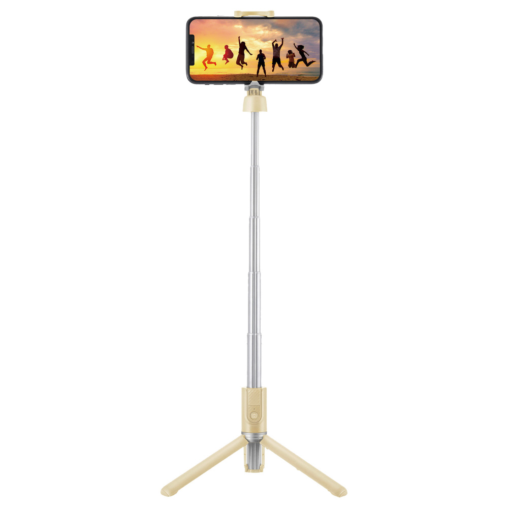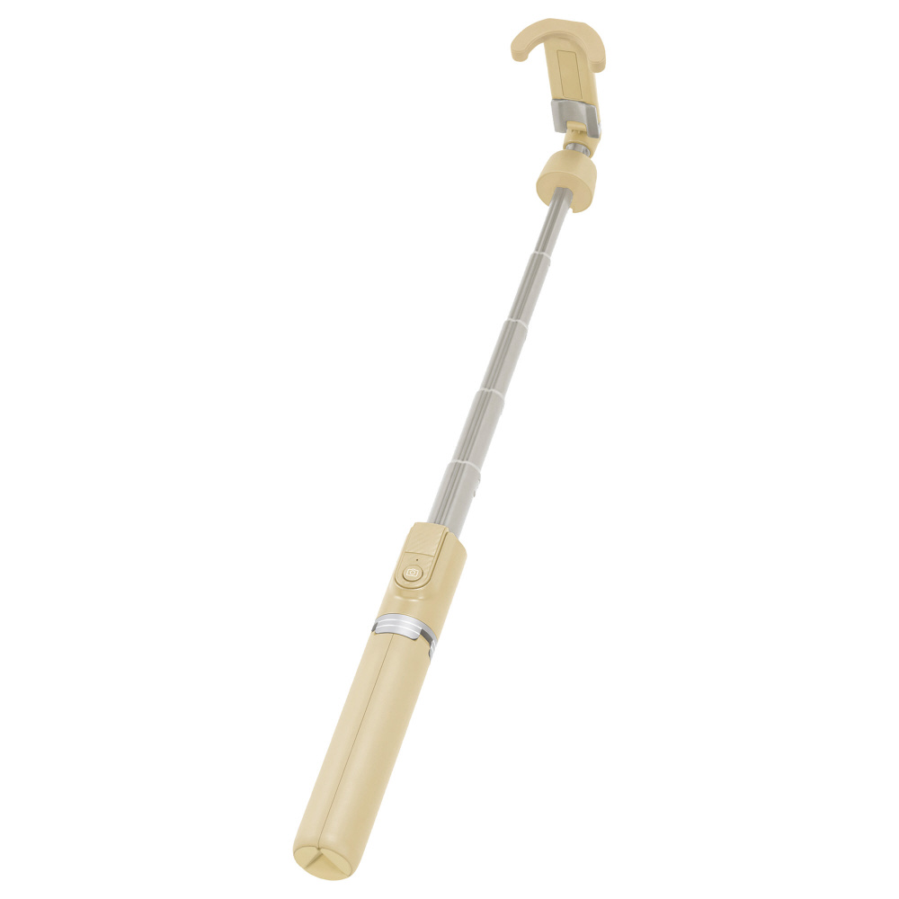 グリップを開いて置くだけの簡単設置。自撮り棒も引っ張るだけで伸ばせます。