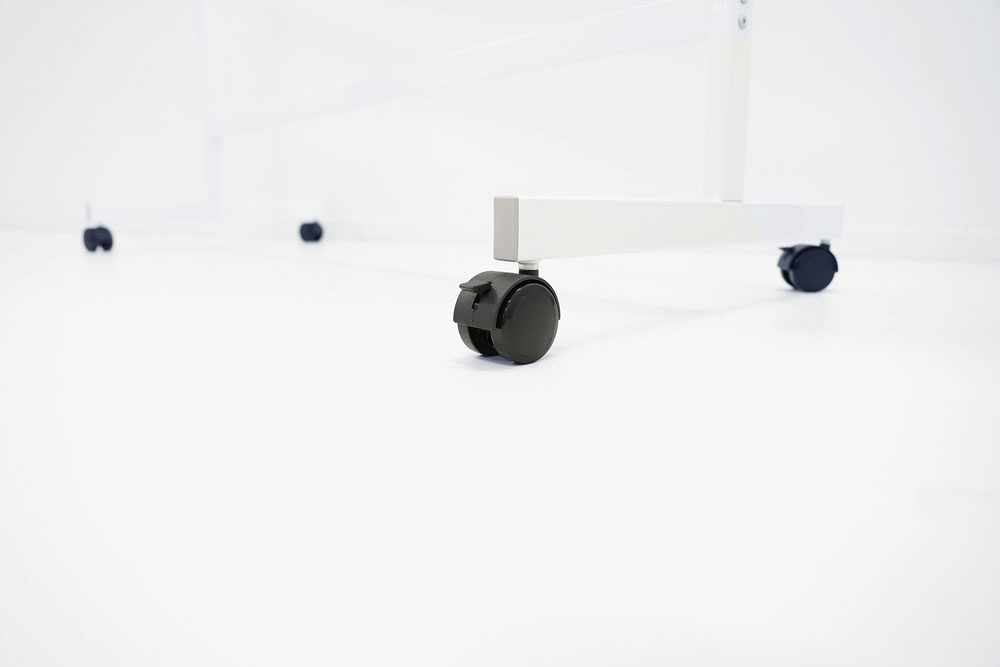 キャスター付きで移動もラクラク。ストッパーがついているので、書くときにはしっかり固定できて使いやすい仕様です。