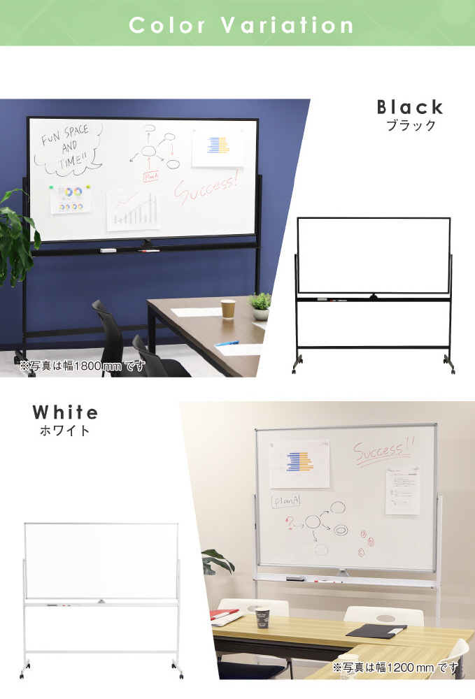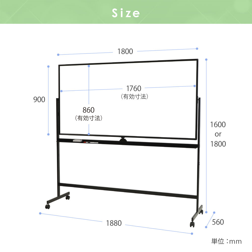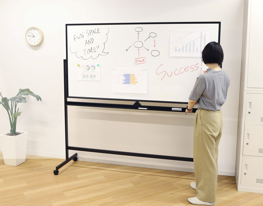 【ホワイトボード】フレックス 両面ホワイトボード 脚付 ホーロータイプ(幅188×奥行56×高さ160〜180cm/フレームブラック) WB-HR1890-BK