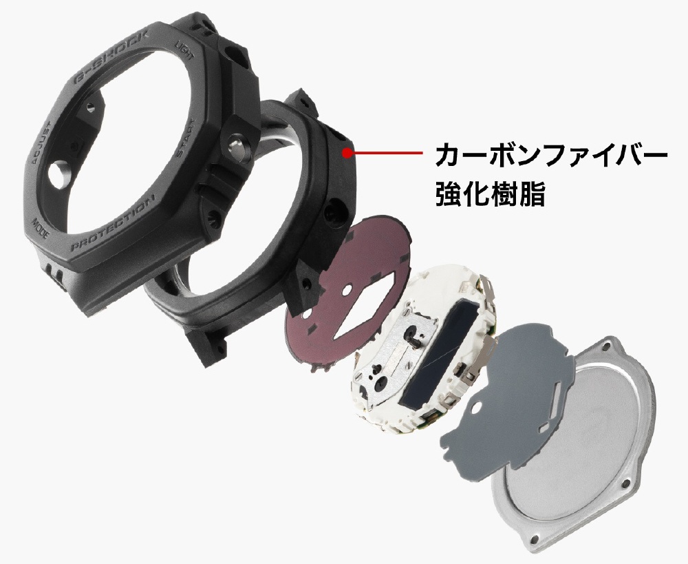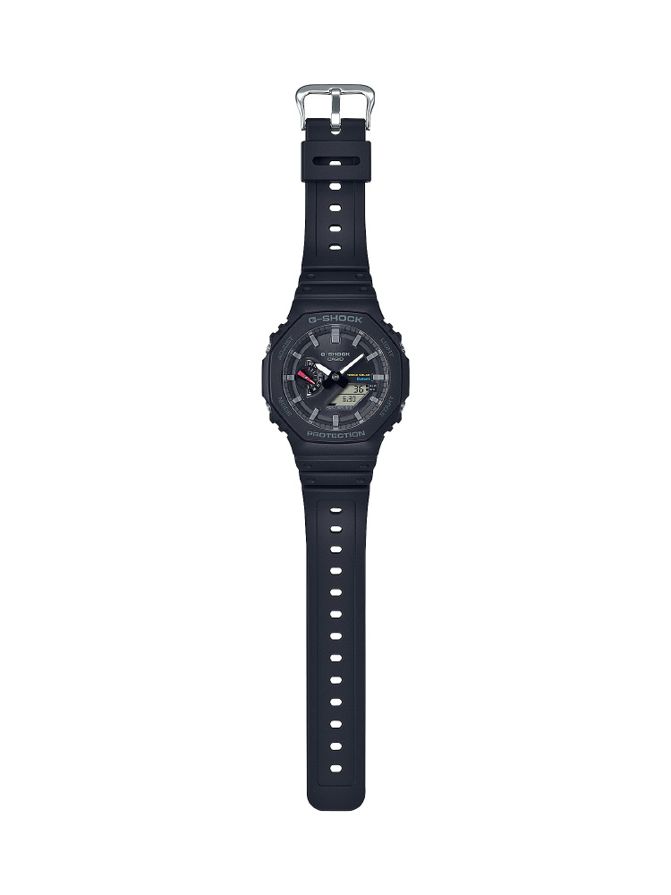 ■初代G-SHOCKのデザインコンセプトを受け継いだGA-2100の八角形フォルムはそのままに、スマートフォンリンクとタフソーラーを搭載しました。