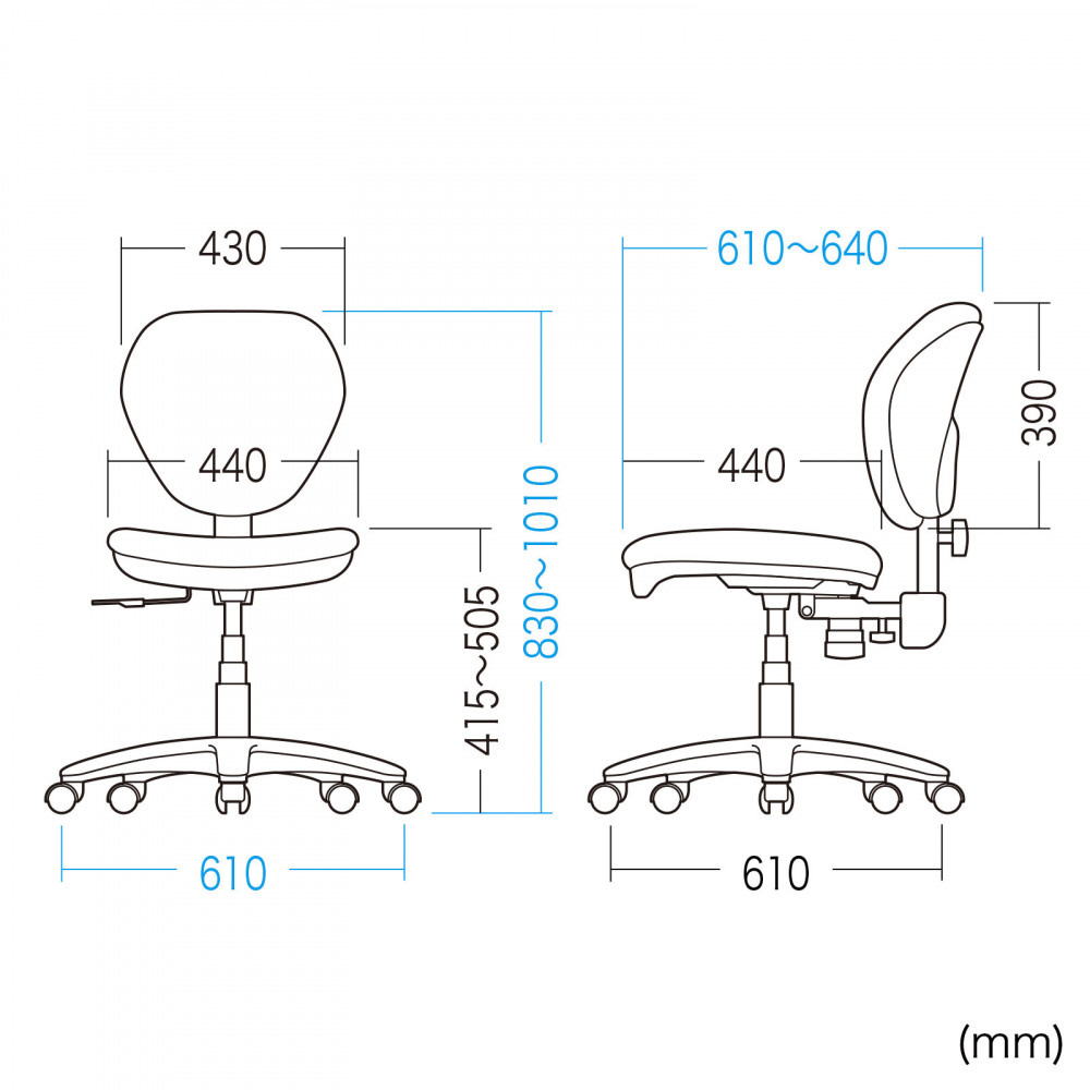 ■座面が最低415mmまで下がるので、女性でも座りやすくなっています。