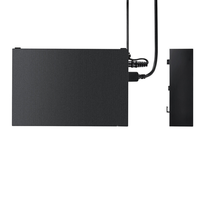 従来のファンレス設計に加え、音漏れの原因となる通気孔をふさぐことで、さらなる静音化を実現。防振用シリコンゴムでフローティング構造にして振動による音も低減しています。また、筐体底面にも4つのゴム足があり、筐体が振動しても、それを外に伝えないようして騒音をさらに低減します。