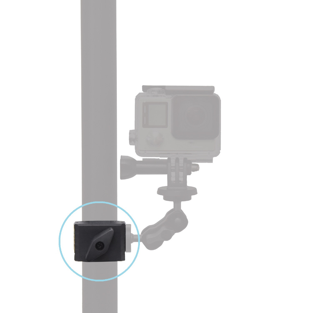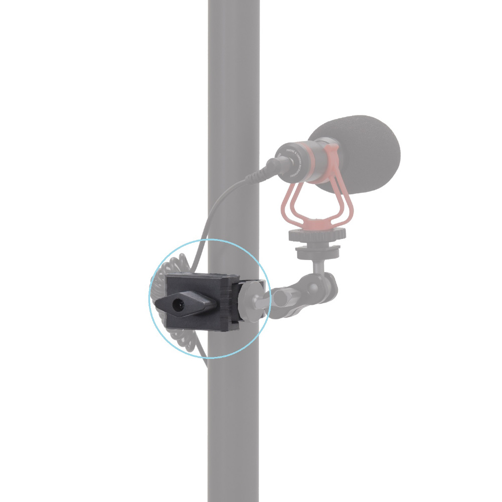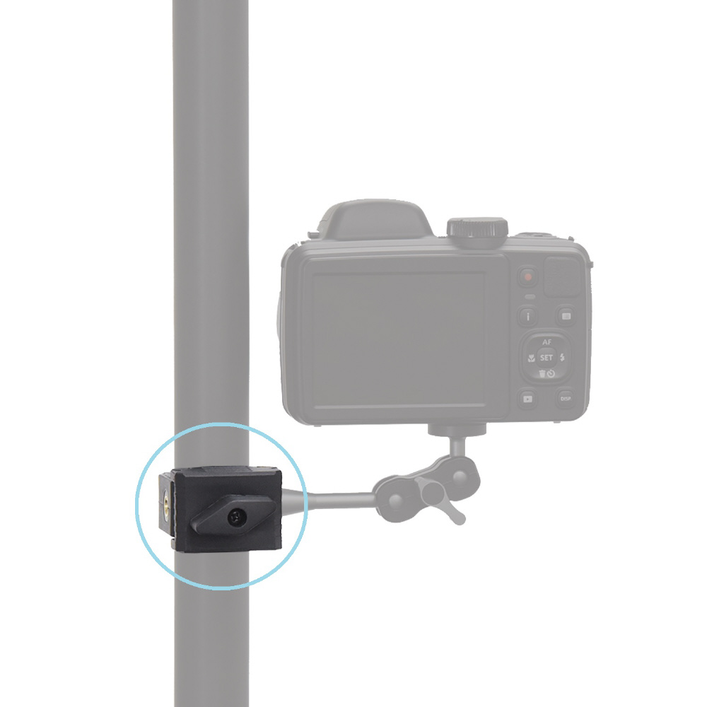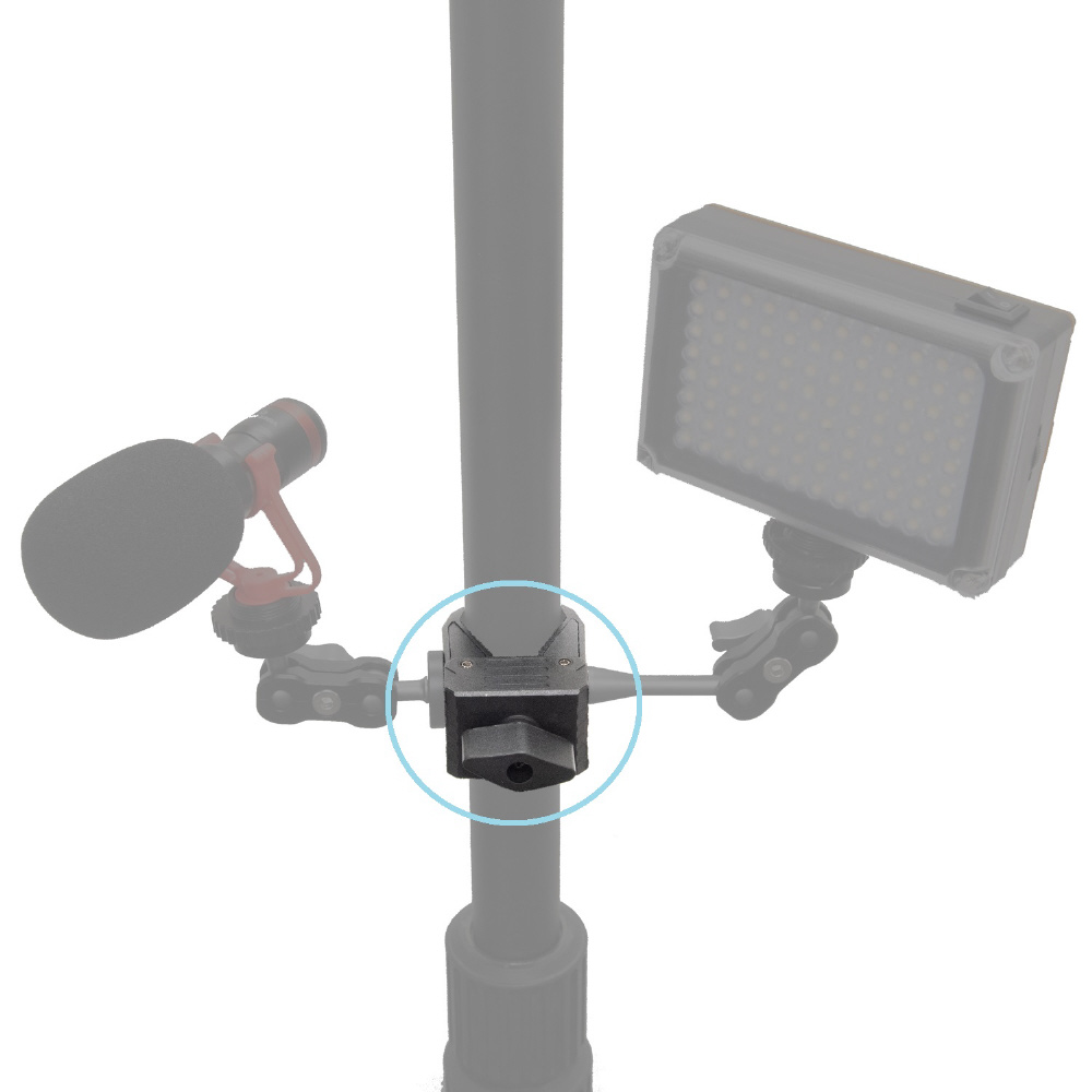 三脚の脚、ライティングポール、テーブルなどに挟んで固定でき、モニターやライトなどの各種アクセサリーが装着可能です。