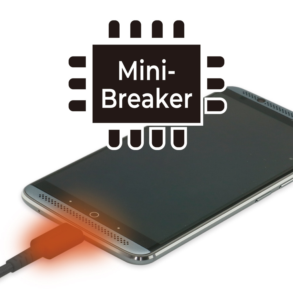 ケーブルの両端にMini-Breaker (ミニブレーカー)を搭載しているため、PTC (温度センサー)搭載のケーブルと比較して過熱防止・安全性に優れ、安心してお使いいただくことができます。
