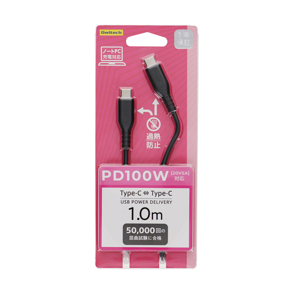 PD100W対応 eMarker+Mini-Breaker搭載 やわらかく断線に強い USB2.0 Type-C to C ケーブル