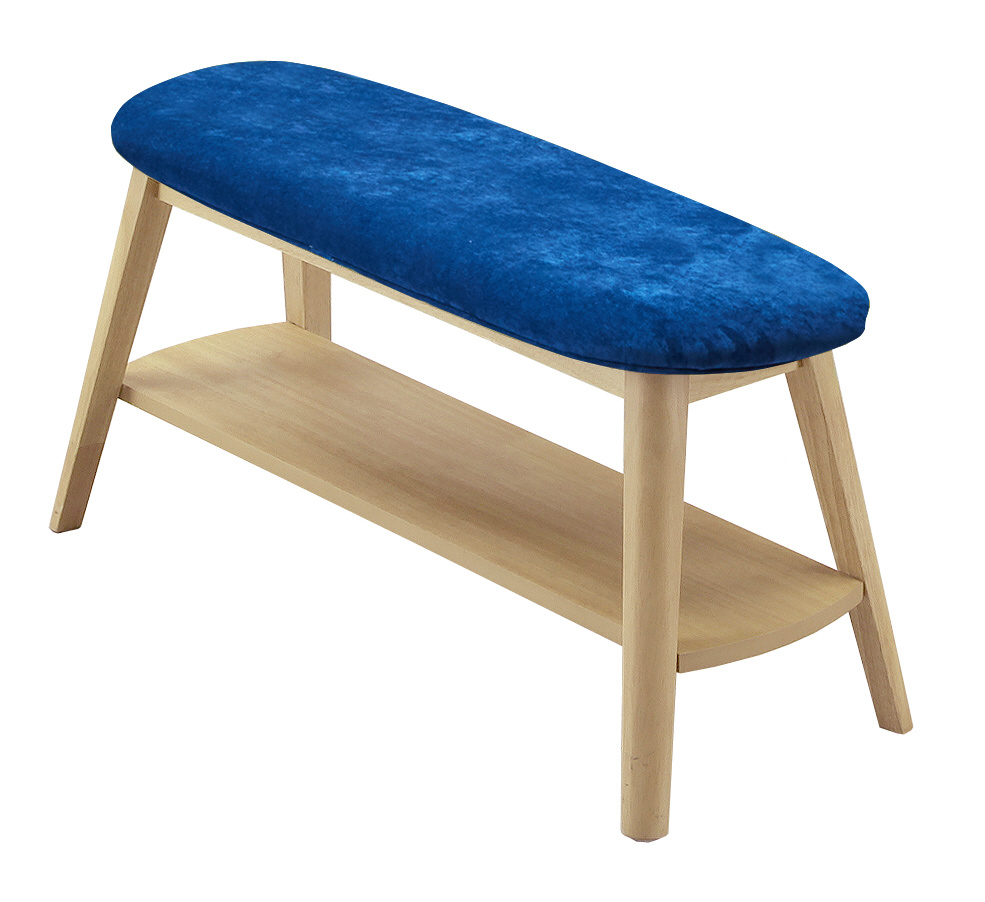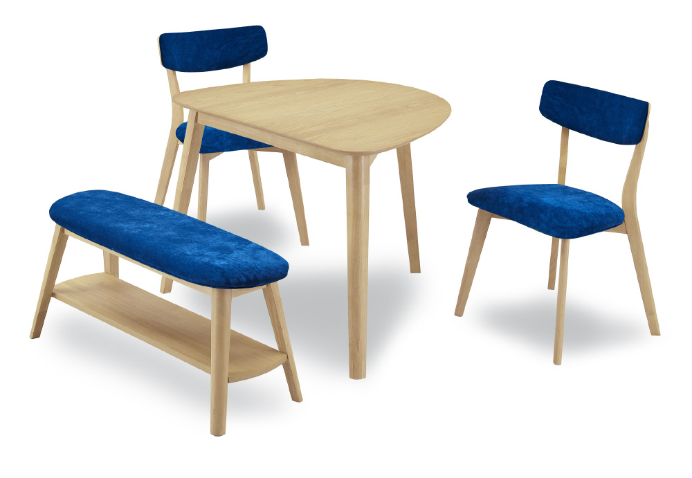 座面の下に収納棚がついたおしゃれなベンチ。散らかりがちなダイニングも、すっきりスマートに。脚/ナチュラル・座面/ブルーのベンチです。