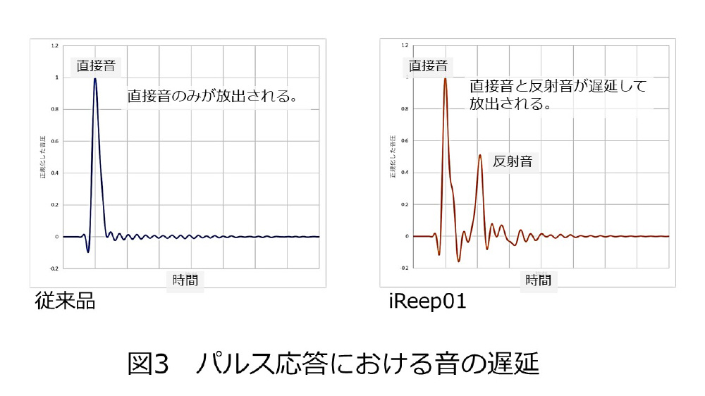 ゆえに擬似的なサラウンドを得るためには、イヤホンから出る直接音とわずかに遅延時間を持たせた反射音を重畳して放出し、人の耳に空間を感じさせることが必要であるという結論に至りました。