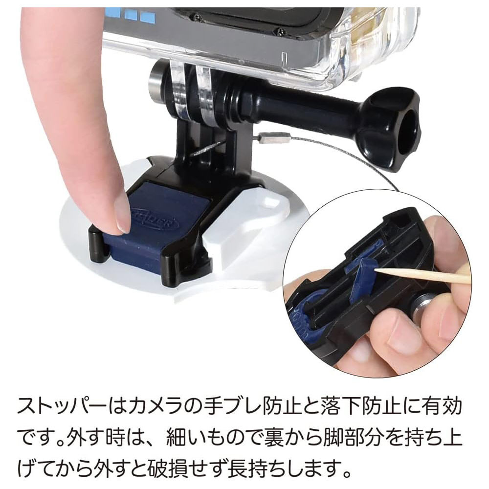 サーフボードマウントのデザインと製造は100%日本で行い、カメラの脱着回数が多く摩耗が激しいベースマウントの耐久性を強化しました。