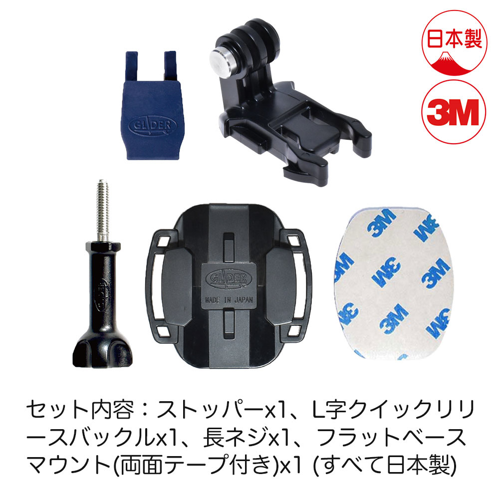 ●セット内容:L字クイックリリースバックル×1、フラットベースマウント×1、フラット用3M両面テープ×1、長ネジ×1、ストッパー×1