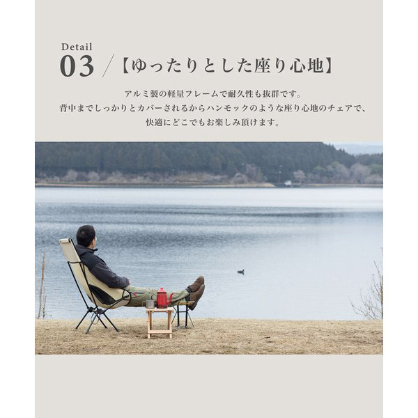 シンプルなデザインで室内でもおしゃれに、もちろん野外でもゆったり。誰でも手軽に持ち運びができるのが嬉しい。