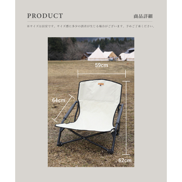 展開すると広々と座れるチェアですが、畳めば持ち運びやすいコンパクトサイズに。