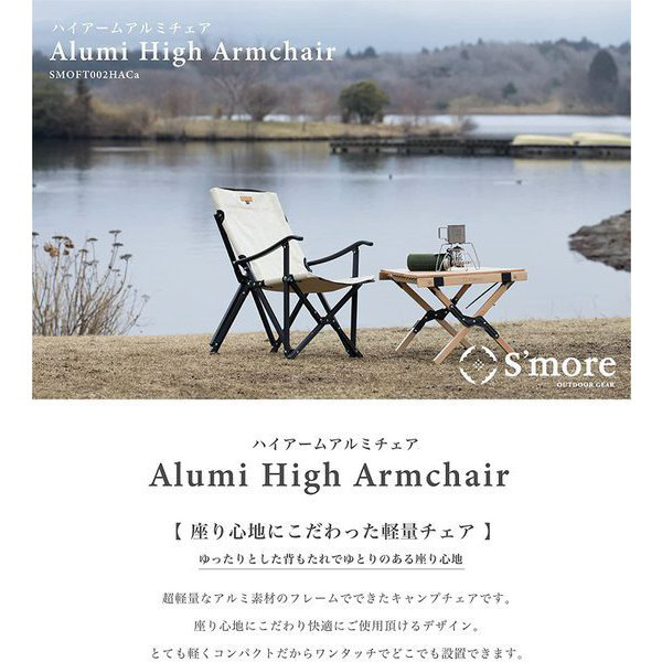 Alumi High Armchair アルミ ハイ アームチェア(約幅45×奥行52×高さ68cm/ベージュ) SMOFT002HACaFbeg ベージュ [ロータイプ /1人向け /単品]
