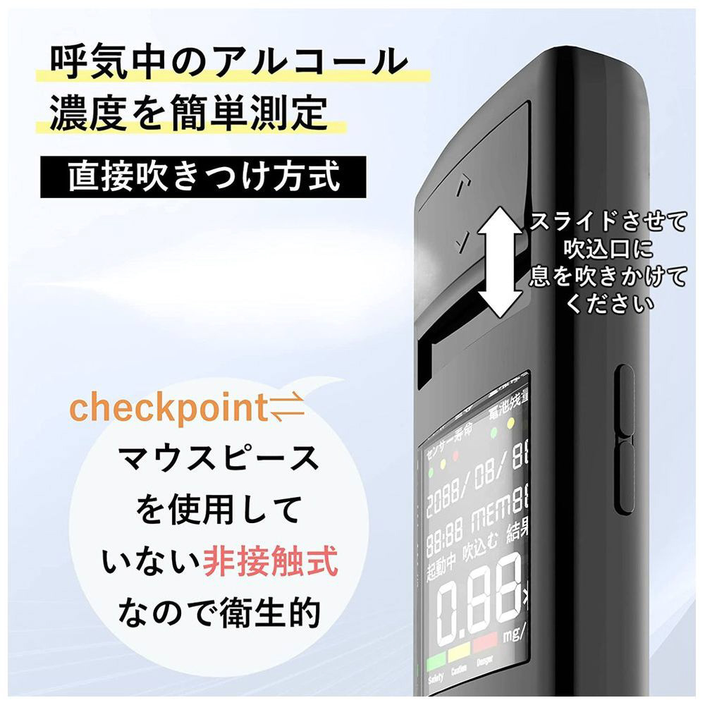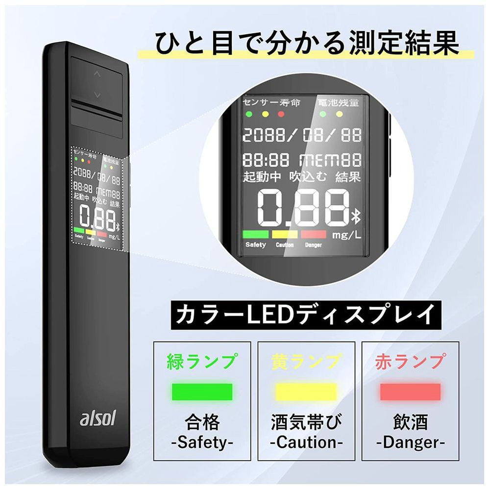 ・呼気中アルコール濃度測定範囲:0.00〜1.00mg/L (0.05表示単位、0.05未満は0.00表示されます)