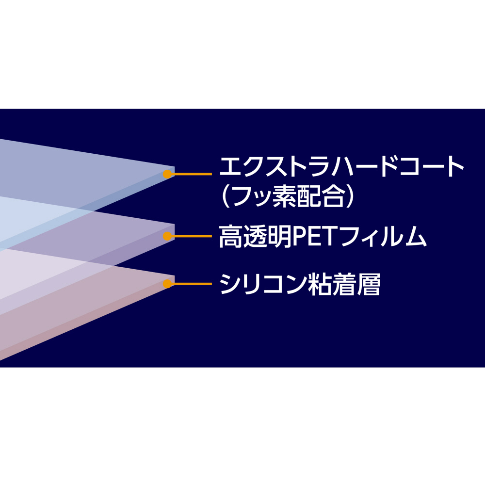 エクストラハードコートによりガラスと同じ硬度9Hでありながら割れに強い安心フィルム。ガラスのような透明度と硬度をフィルムで実現。