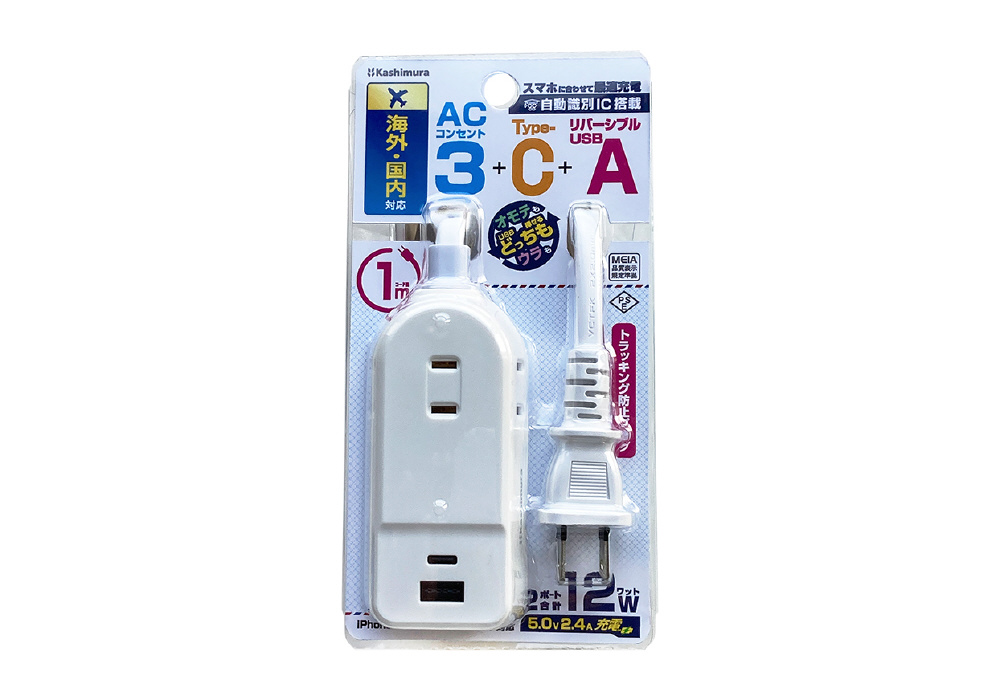 国内/海外兼用電源タップ(AC3、A/C2P、2.4A、1m) ホワイト WM-19