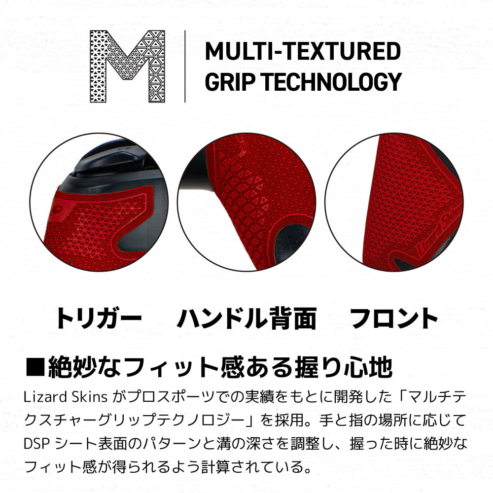 Lizard Skinsがプロスポーツでの実績をもとに開発した「マルチテクスチャーグリップテクノロジー」を採用。