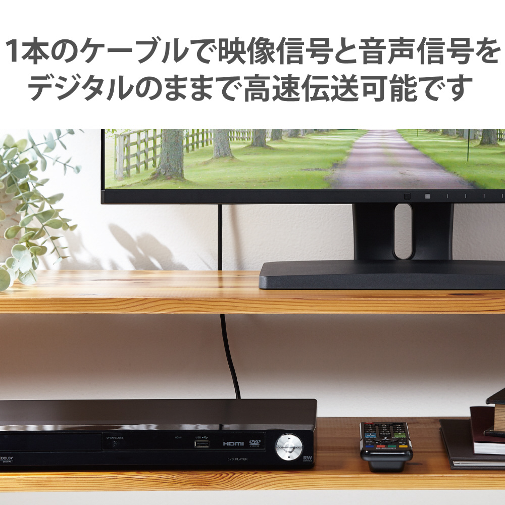 ■4K(60P)に対応した、ハイブリッド構造のHDMIケーブルです。 ■1本のケーブルで、映像信号と音声信号をデジタルのままで高速伝送可能です。 ■映像伝送用高速ラインに光ファイバーを採用することで、外来ノイズの影響を受けにくく、安定した映像伝送が可能です。 ■光ファイバーの採用により、ケーブルの細径化と軽量化を実現しています。 ■各種制御信号やパワーラインには銅線を採用することで、HDMI端子からの電力供給が可能となり外部電源不要で動作します。 ■外部供給電源不要なため、電源用コンセントのない場所の配線が容易になります。 ■家庭内シアターシステム構築時やサイネージなどの用途でも取り回ししやすい約4.8mm径のケーブルを採用しています。 ■サウンドバーとの接続が可能なARCに対応しています。 ■BT.2020や、HDR10、Dolby Vision(R)、HLGのHDRコンテンツに対応しています。 ■自社環境認定基準を1つ以上満たし、『THINK ECOLOGY』マークを表示した製品です。 ■環境保全に取り組み、製品の包装容器におけるプラスチック重量を、社内基準製品より20%以上削減した製品です。 ■環境保全に取り組み、製品の包装容器が紙・ダンボール・ポリ袋のみで構成されている製品です。