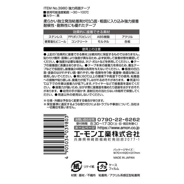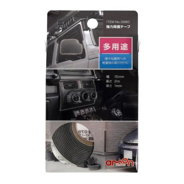 3980 強力両面テープ 多用途 黒色 サイズ:幅15mm×長さ2m×厚さ1mm 3980