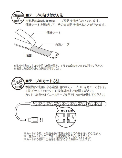 ●USB電源は付属しておりません。市販のUSB-AC電源アダプタ、USBモバイルバッテリーをご利用ください。