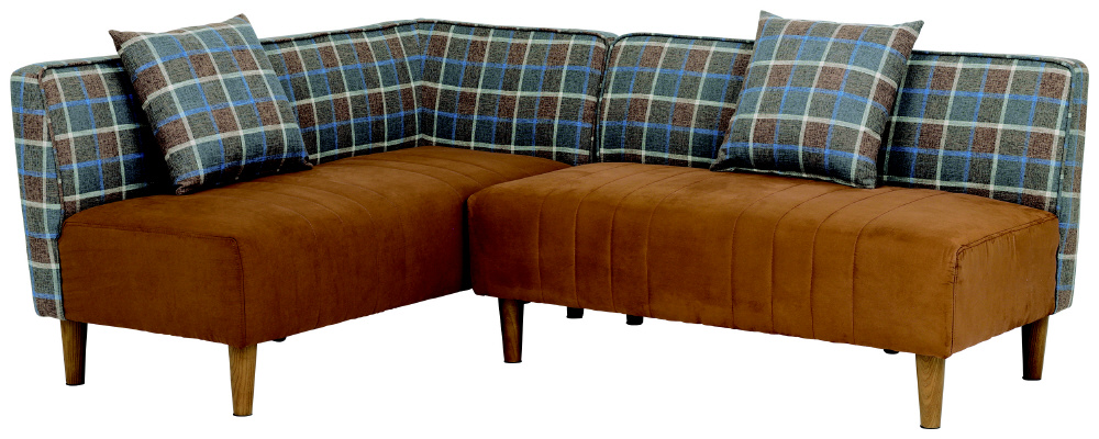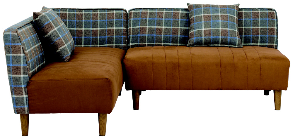 LDソファ ラモーン(約幅191×奥行70×高さ70×座面高さ42cm/右コーナー/キャメル&チェック)