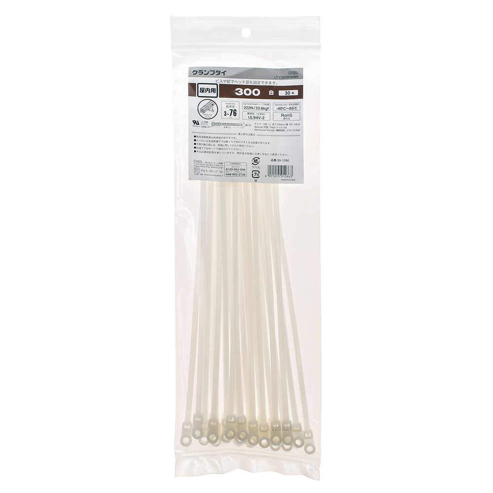 クランプタイ屋内用300mm30本入白 LT-C300W30WH