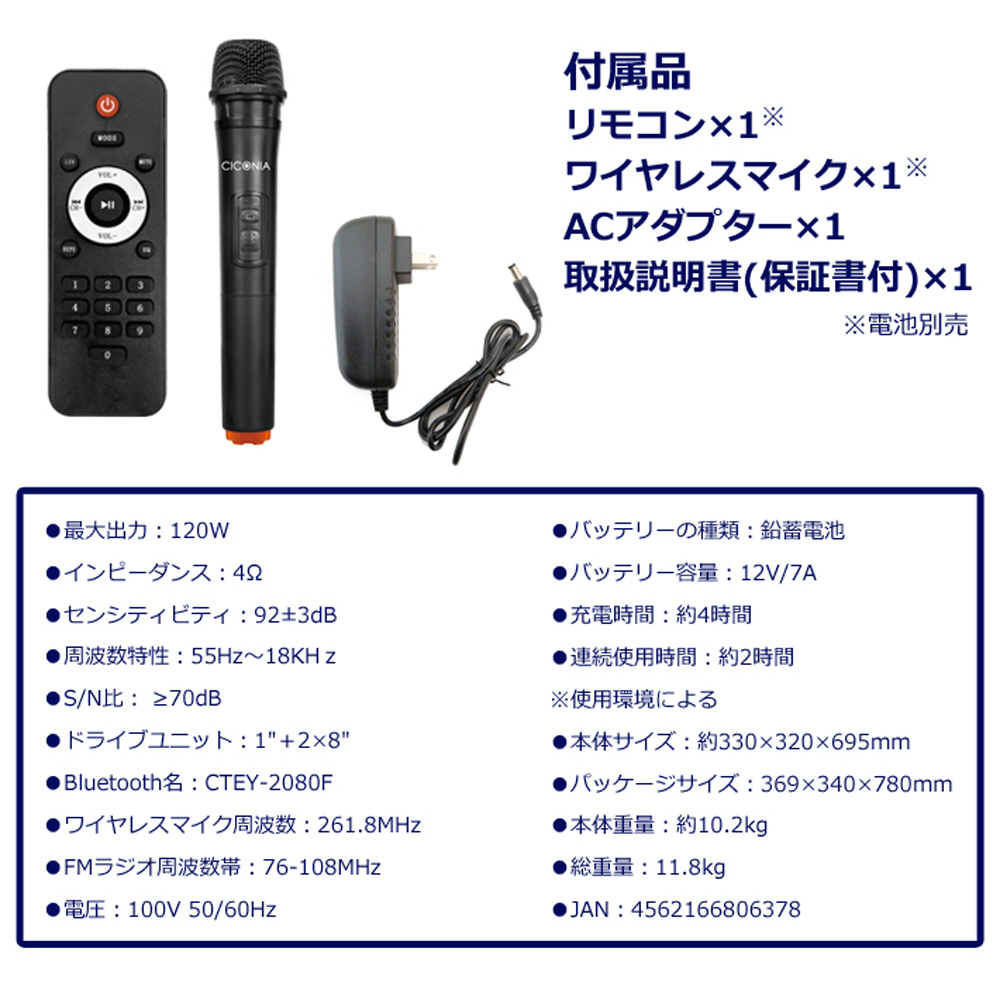 付属品 ワイヤレスマイク1本・リモコン・ACアダプター