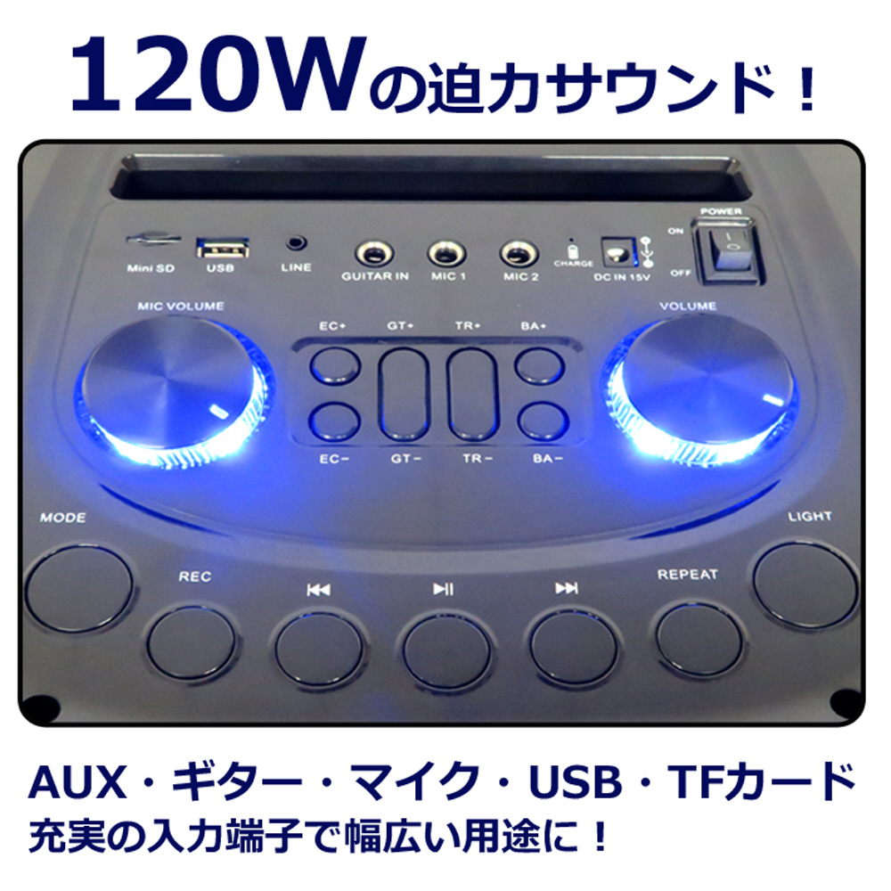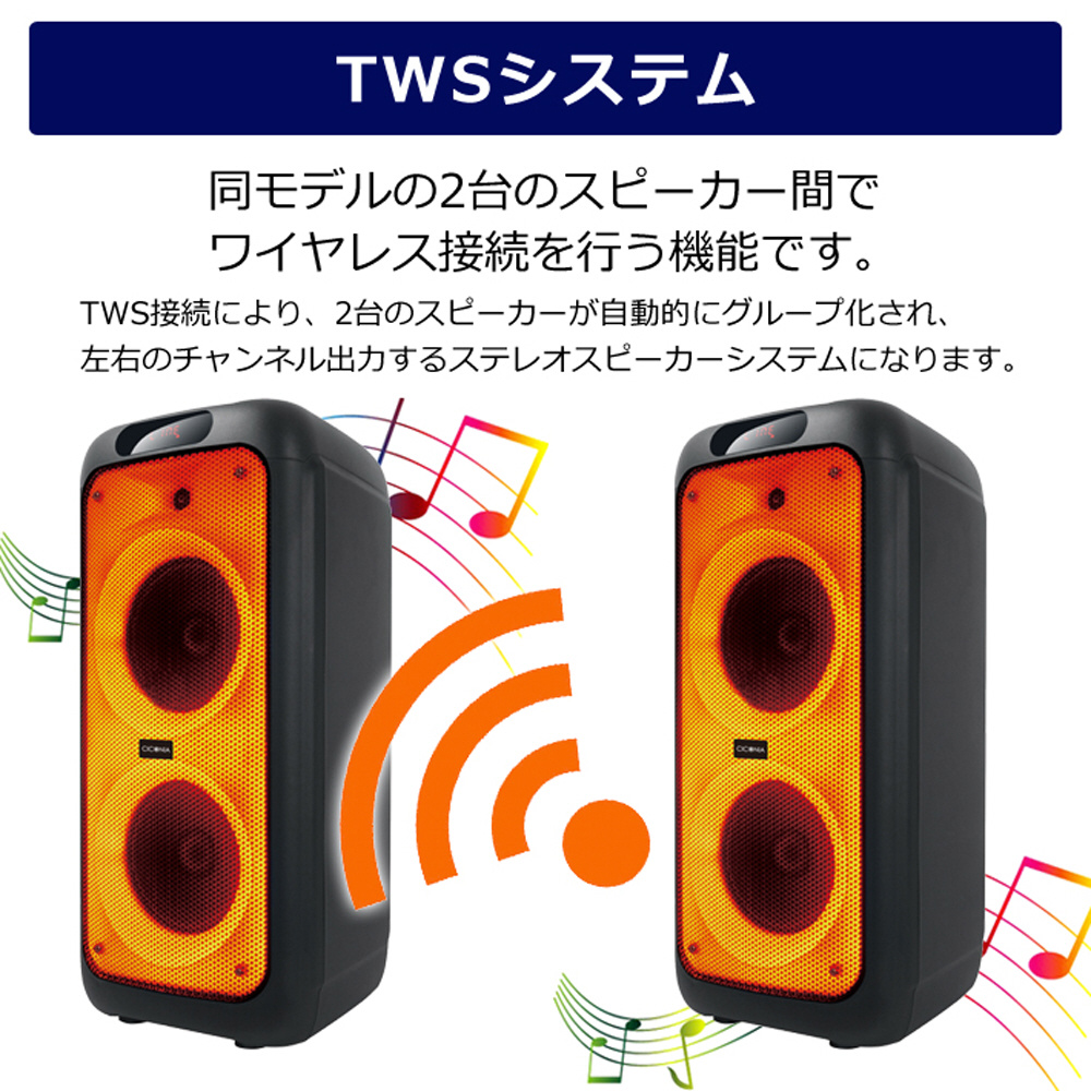 フレイムLEDパーティースピーカー・ブルートゥーススピーカー【ワイヤレスマイク1本付属】 ブラック CTEY-2080F [Bluetooth対応]