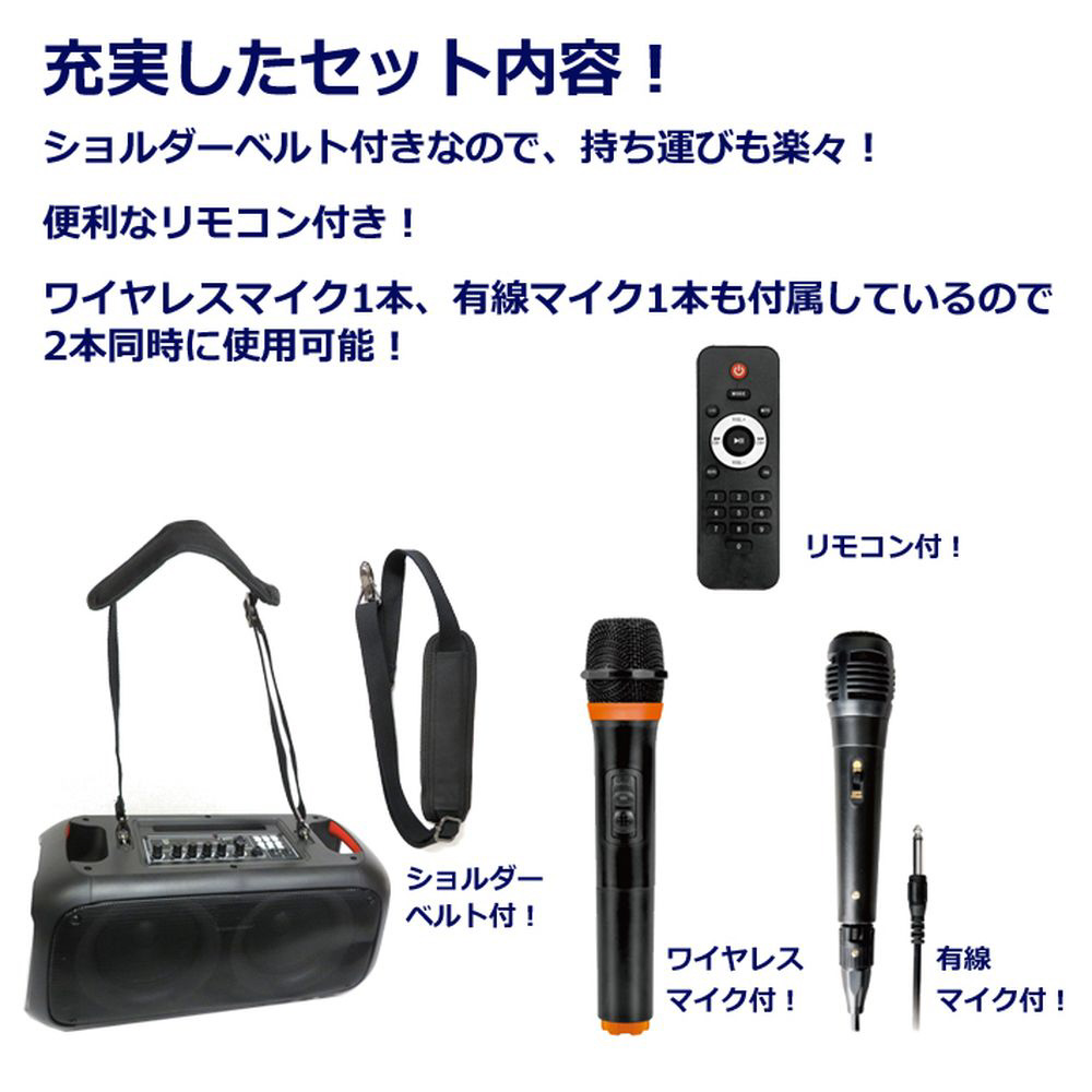 付属品 ワイヤレスマイク・有線マイク各1本・リモコン