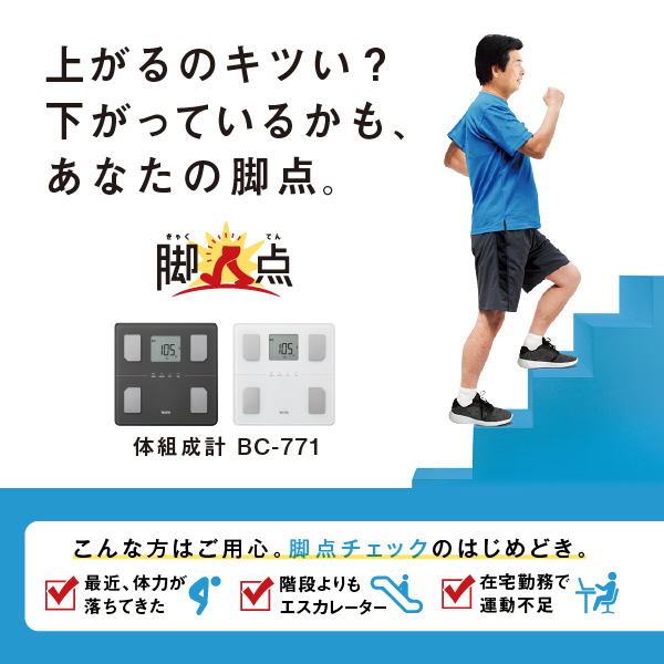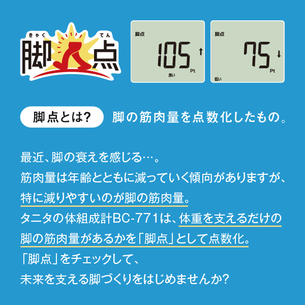 ・体重を支えるだけの脚の筋肉量があるかを「脚点」として点数化。