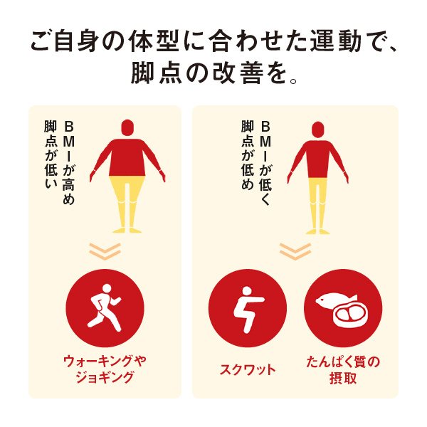ご自身の体型に合わせた運動で、脚点の改善を。