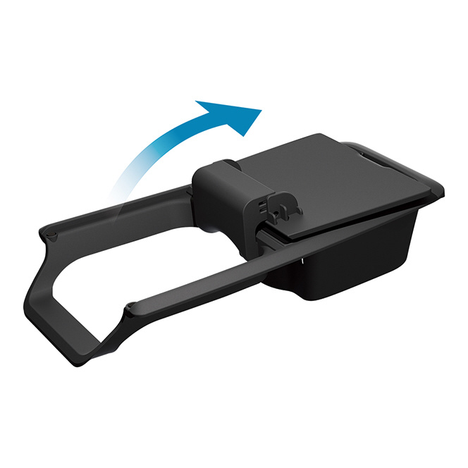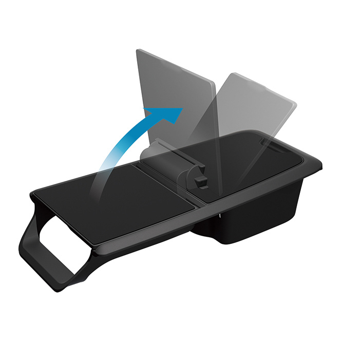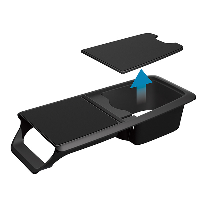 トレイを開くと車両のカップホルダーが使用できる、開閉タイプ。