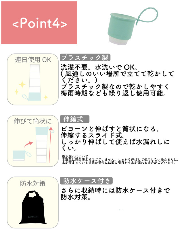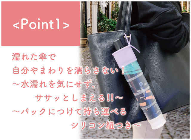 雨の日に便利な濡れない・濡らさないビヨーン と伸びる 傘カバー。防水カバー付きです。