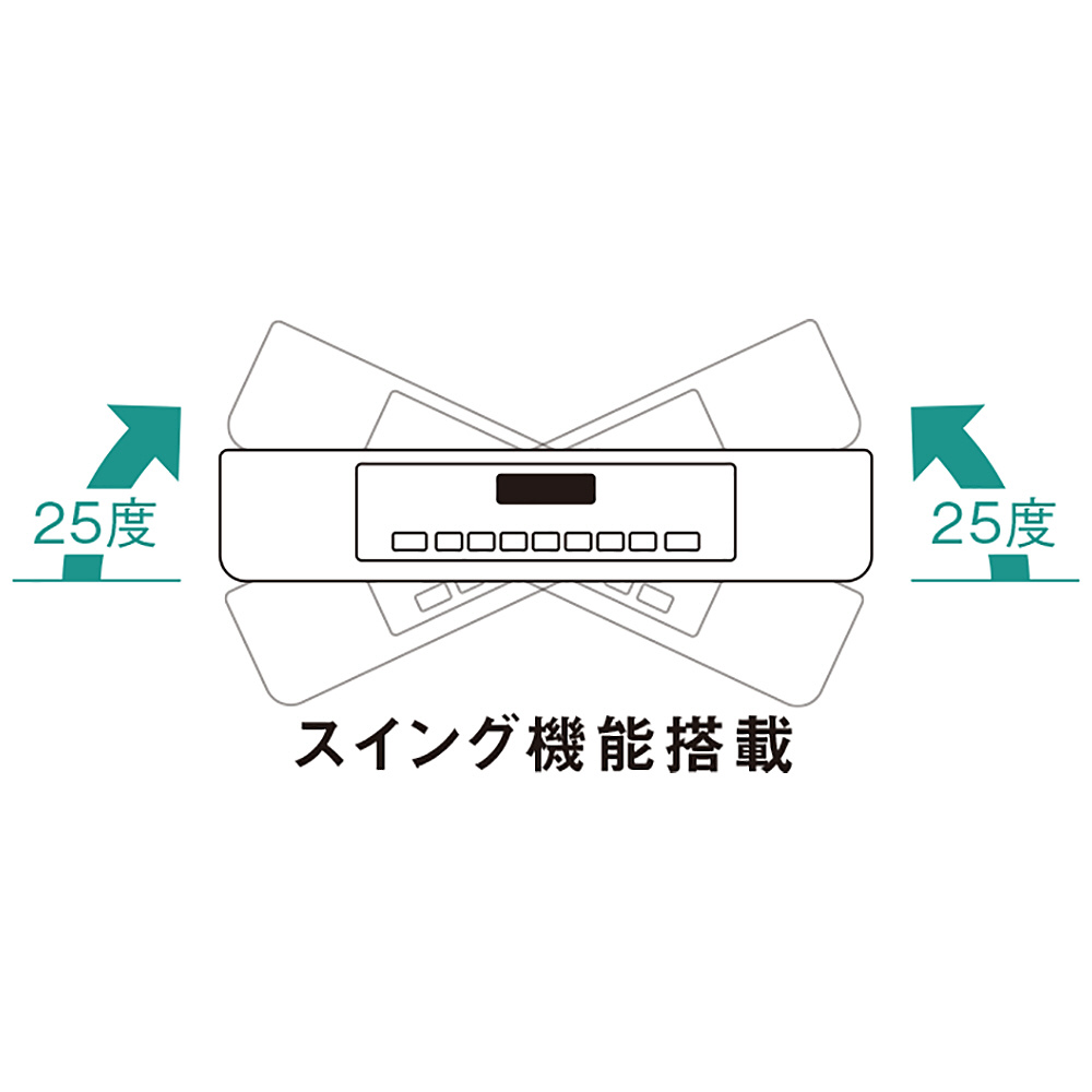 暖めたい方向へ、手動で左右最大約25度回転する「スイング機能」を搭載。